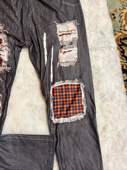 Black Denim w/ Orange Plaid full length Leggings